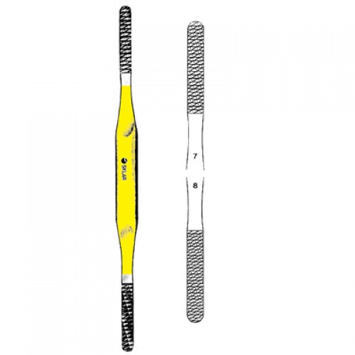 8" TC Fomon Rasp Double Ended, Flat, Backward Cutting, #7 Fine and #8 x-Fine, Tungsten CarbideType: RaspatoryMaterials: Tungsten Carbide / Stainless SteelLatex-FreeReusableNon-Sterile
