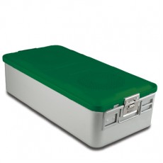23" x 11" x 6" SklarLite Sterilization Full Size Container Non-Perforated Bottom, Green - Each Sold Separately Type: Sterilization Container Materials: Anodized Aluminum Alloy Latex-Free Reusable Non-Sterile