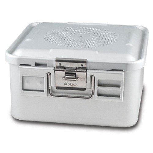 11 3/4" x 11" x 6" SklarLite Sterilization Half Size Container Perforated Bottom, Silver - Each Sold SeparatelyType: Sterilization ContainerMaterials: Anodized Aluminum AlloyLatex-FreeReusableNon-Sterile