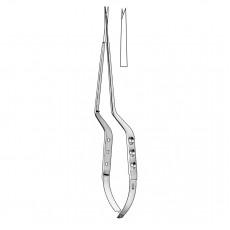 8-3/4" Yasargil Micro Scissors Curved, Sharp/Sharp, Flat Bayonet, Knotched TipType: ScissorsMaterials: Stainless SteelLatex-FreeReusableNon-Sterile