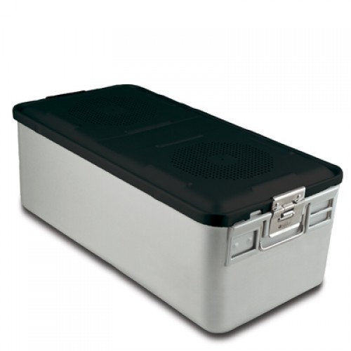 23" x 11" x 8" SklarLite Sterilization Full Size Container Non-Perforated Bottom, Black - Each Sold Separately Type: Sterilization Container Materials: Anodized Aluminum Alloy Latex-Free Reusable Non-Sterile