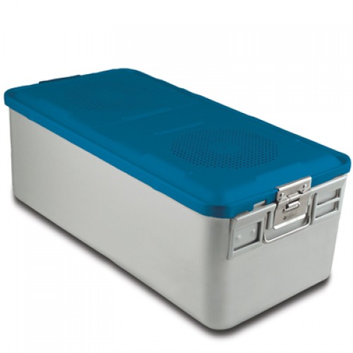 23" x 11" x 8" SklarLite Sterilization Full Size Container Perforated Bottom, Blue - Each Sold Separately Type: Sterilization Container Materials: Anodized Aluminum Alloy Latex-Free Reusable Non-Sterile