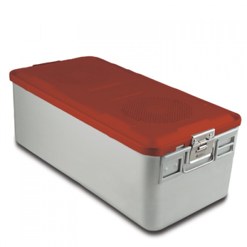 23" x 11" x 8" SklarLite Sterilization Full Size Container Perforated Bottom, Red - Each Sold Separately Type: Sterilization Container Materials: Anodized Aluminum Alloy Latex-Free Reusable Non-Sterile